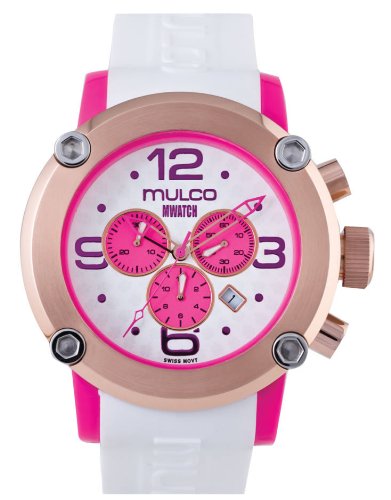 Amazing MULCO watch, great new design with white PU band, Stainless steel case, Pink and white dial with triple analog spheres. Water resistant 100 Meters (330 feet). Gold plated bezel.Since its Creation in 1958 by Mr. Muller (Muller and Co.), Mulco quickly became a prestigious brand that stood head to head with other competitive Swiss watches. With its suggestive designs and impeccable quality, this exclusive brand superseded the expectations of the demanding European, American and South American markets.Mulco maintained its place in the market until it was bought by one of its competitors in 1973, and for three decades the brand remained a sleeping giant only to be reawakened in 2006 by group visionary entrepreneurs. Never forgotten by its followers for its impressive lines and distinguish quality, Mulco stood the test of time, mesmerizing customers once more with the brand's new look. Mulco Watches Inc. gathered a dynamic group of designers and watch manufactories creating a fashionable yet unique collection of bold new models with playful vibrant colors, original textures and solid materials. Most importantly, the new Mulco inherited the classic seal of quality that people have come to expect from the brand. Mulco is now committed to continue this legacy by constantly updating models and improving the brand; altogether creating the best piece of time you can wear. And forever designing time.